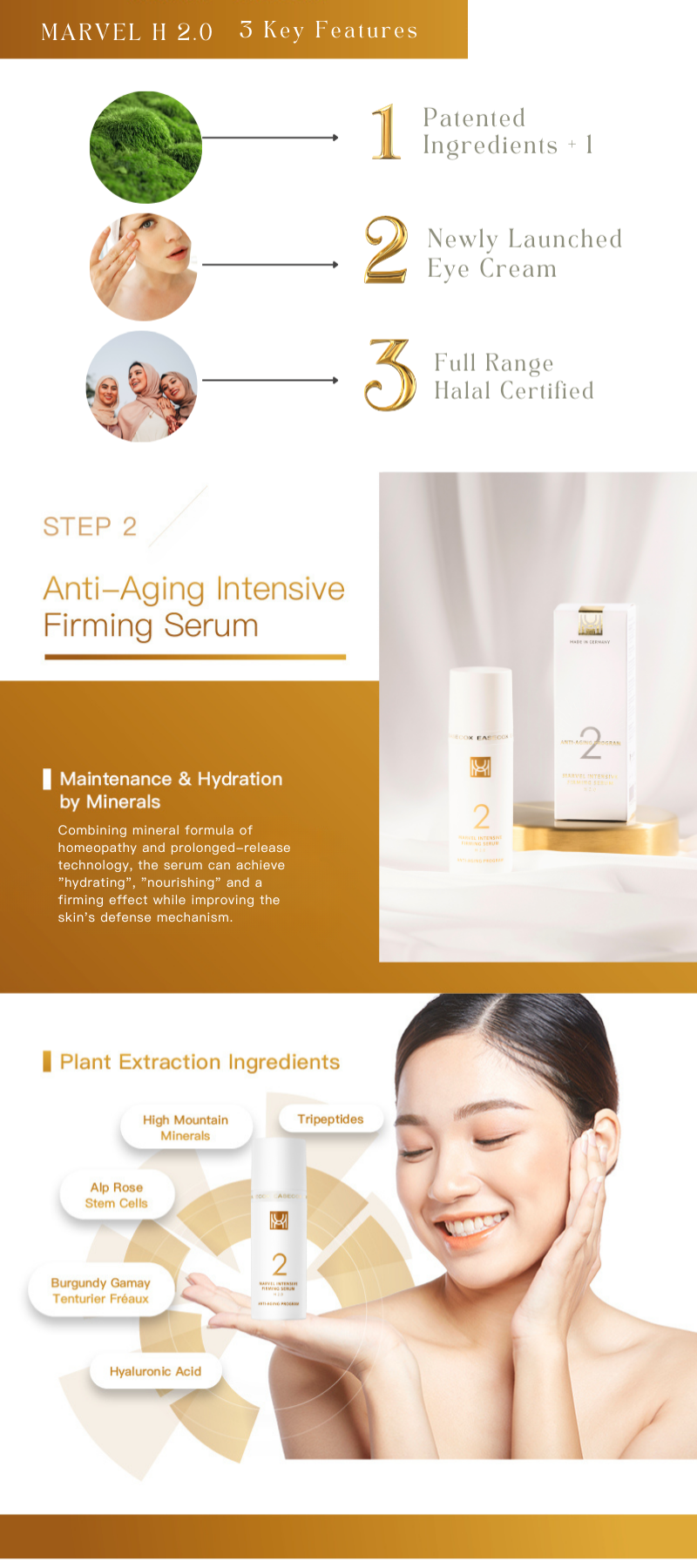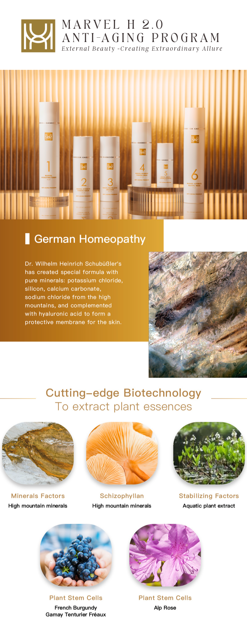 Combining mineral formula of homeopathy and prolonged-release technology, the serum can achieve "hydrating", "nourishing" and a firming effect while improving the skin's defense mechanism.