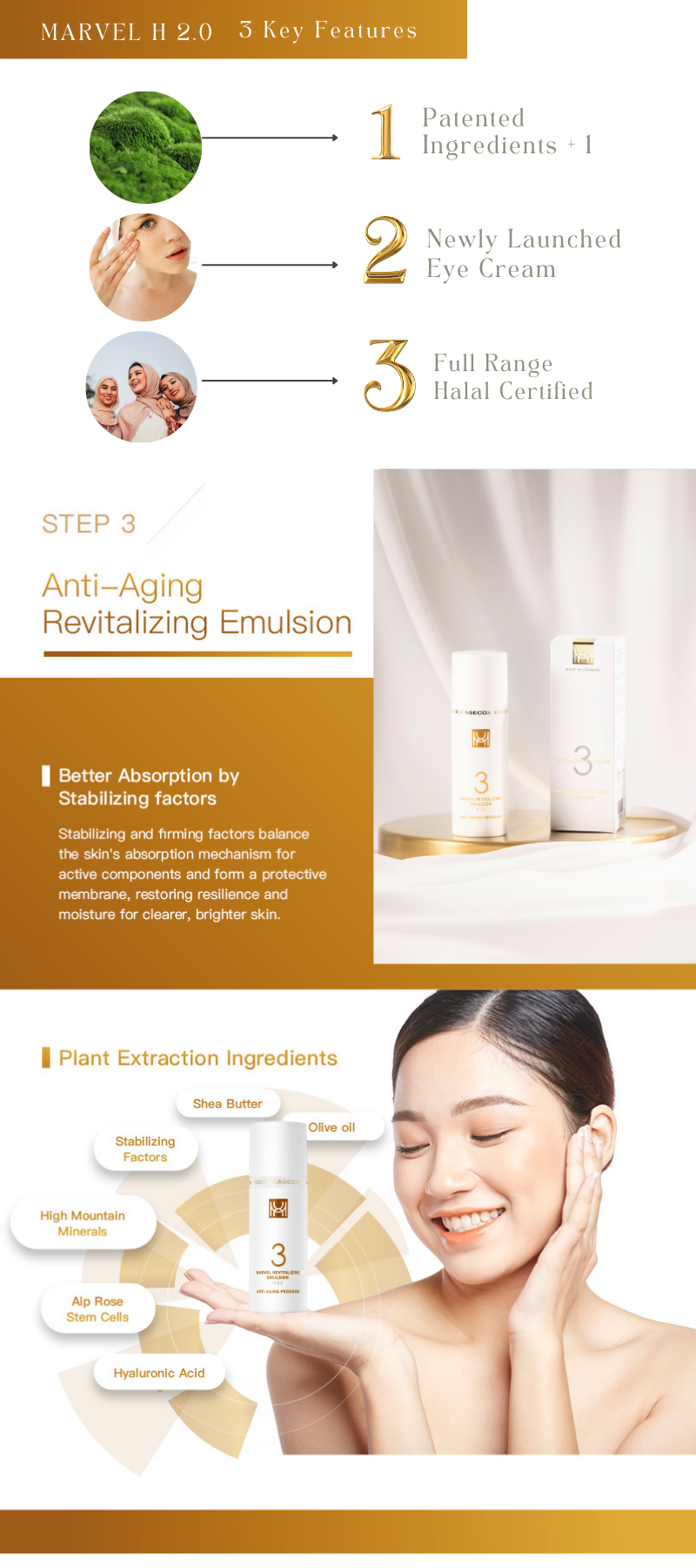 Stabilizing and firming factors balance the skin's absorption mechanism for active components and form a protective membrane, restoring resilience and moisture for clearer, brighter skin.